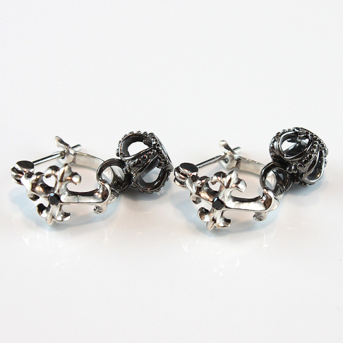 This beautiful Sterling Silver Earrings are crafted from pure sterling silver (925) and arranged with black crown and french lily (Fleur De Lis) cross ornaments.